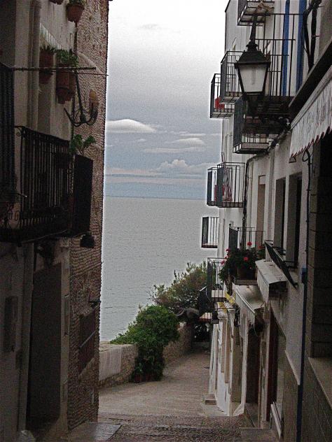 Calle con el mar al fondo,