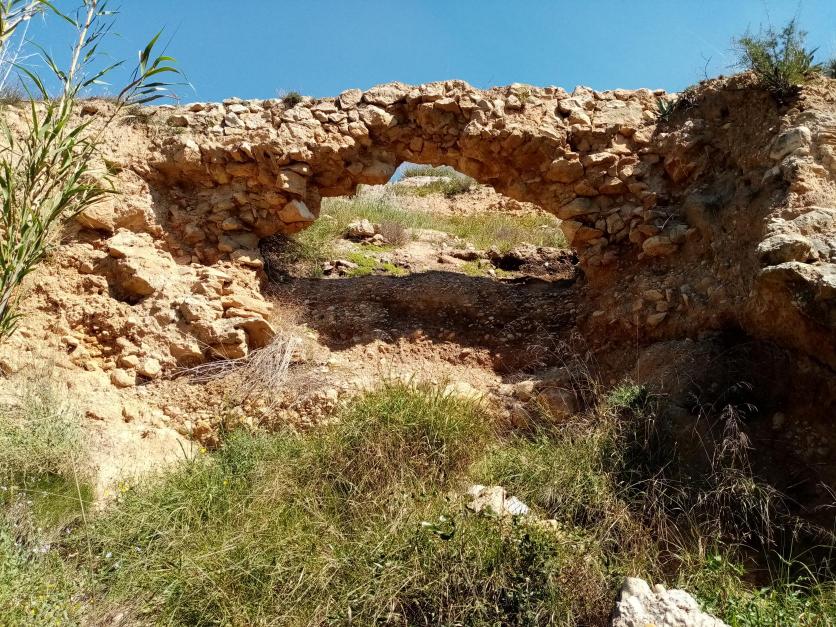 arc format per el derrumbament del mur de cimentacio del antic acueducte roman-antiga sequi mare