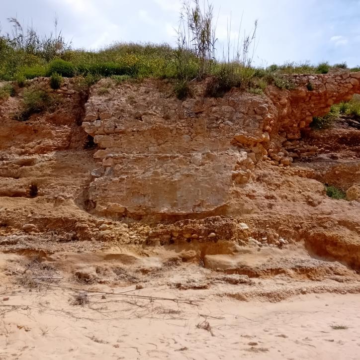 Ruines de mur de la antiga sequia major baix del Mas del Riu,