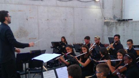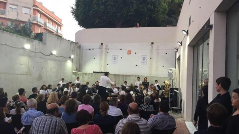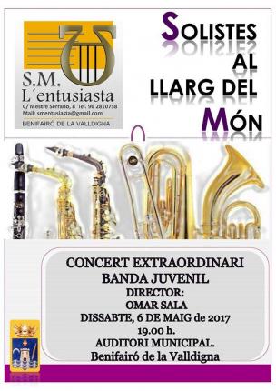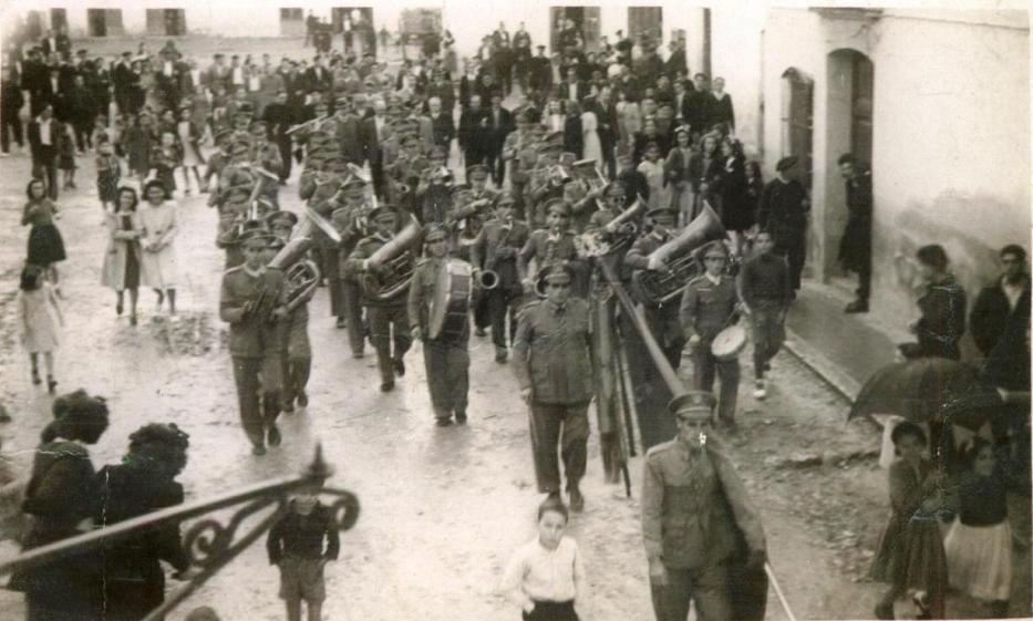 La SM l´Entusiasta en un pasacalle por la población, con Vicente García Bou "Mestre Bou", como director (La SM l´Entusiasta en un pasacarrer pel poble, amb Vicente García Bou "Mestre Bou" com a director)