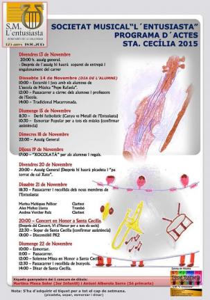 música (Celebració de la festa de Santa Cecilia 2015 pels alumnes de l´escola de música) Partido tradicional de futbet "Caña - Metal, y después un buen almuerzo (Partit tradicional de futbel Canya - Metall, i despés un bon esmorçar)
