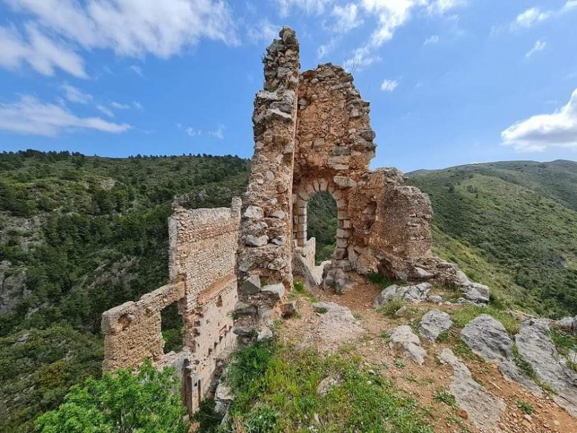 Vista de las ruinas del Castillo de Alfándech, situado en el término municipal de Benifairó de la Valldigna (Vista de les ruines del Castell d´Alfàndech, situat al terme municipal de Benifairó de la Valldigna)