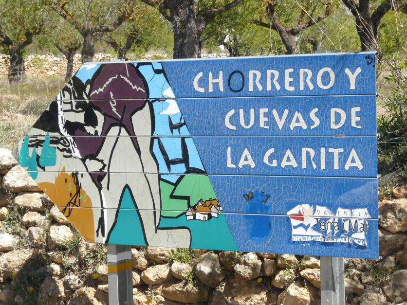 Vista la cascada desde lejos un cartel indica el camino,