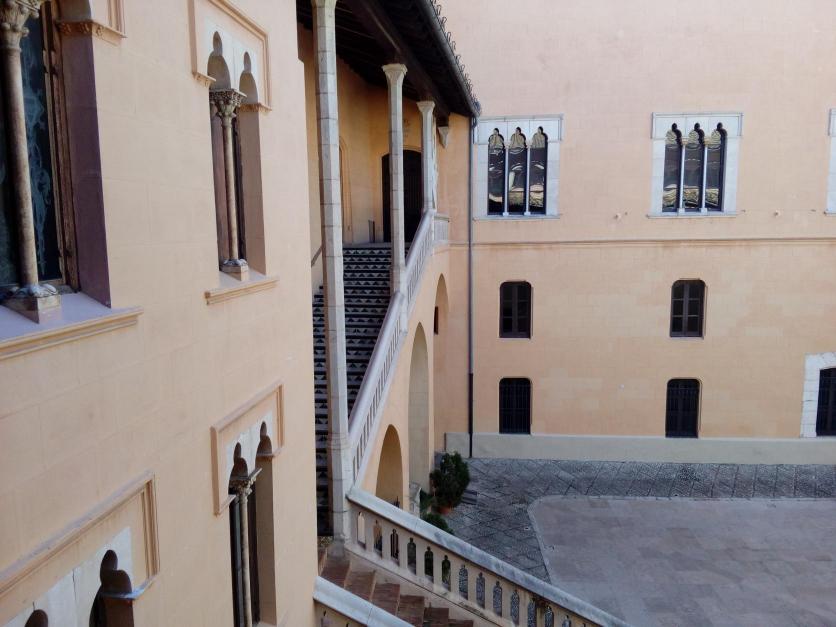 patio gótico, del que sobresale esa escalinata construida en dos tramos. Arriba, unas