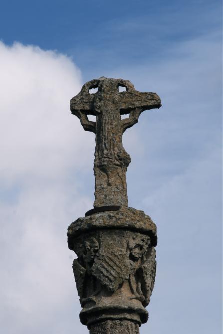 Detalle escudos esculpidos en la Cruz de la Horca,