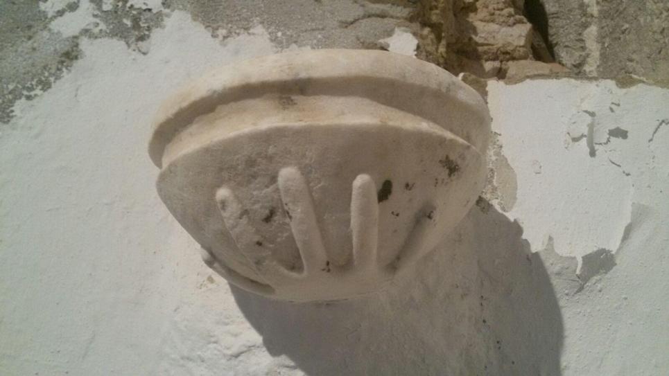 la mano que sustenta la pileta del hospital medieval del buen pastor,