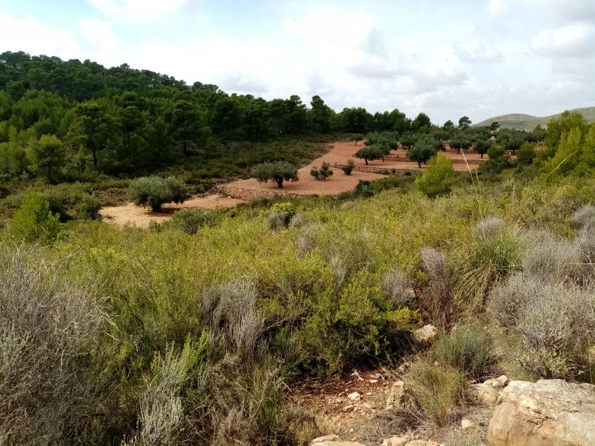 mullo de pedra i bancals de oliveres que separen Valencia i Castello,