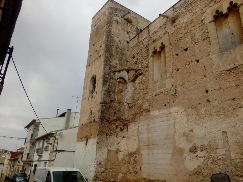 Castillo-palacio de Luchente El castillo es de planta cuadrada, con cuatro torres adosadas a las esquinas. El patio interior es el punto central de la construcción, presentando el mismo dos alturas. La fachada destaca por la presencia de dos torres, rematadas con almenas cerradas, lo cual otorga diferentes alturas, así como la superposición de otra obra posterior rematada del mismo modo. Los muros son de tapial y los forjados están conformados en la planta baja por bóvedas y en las plantas superiores por artesonados de madera. La disposición de las aspilleras, así como mechinales y huecos de paso en los muros de tapial confirman su utilización como fortaleza. 2​ Durante los siglos XIV-XV deja de tener sentido el uso como fortaleza y se realizan una serie de reformas tendentes a su rehabilitación como residencia palaciega, dejando de tener uso las aspilleras, quedando impracticables, siendo en muchos casos tapadas. 2​ En las fachadas sur y oeste, se abren grandes ventanas góticas, trilobuladas y construidas con sillares. Las torres, también tienen ventanales, aunque de dimensiones más reducidas que los anteriores y enmarcados en arcos conopiales, decorados con motivos geométricos en su cara interna. En el muro posterior, encontramos una serie de almenas cegadas con arcos de medio punto que antiguamente sostendrían una techumbre. La entrada al edificio se realiza a través de un arco de medio punto adovelado en cuyo interior encontramos un arco rebajado, que conservan señales de los anclajes de las puertas. Como hemos dicho anteriormente el castillo tiene un amplio patio central, alrededor del que se estructuran el resto de dependencias; destacando, por ejemplo, los restos del aljibe que se observan en la parte izquierda. A la planta principal o noble, se accede mediante unas escaleras y galería cubierta de la cual se conservan dos columnas de fuste octogonal, típicas del gótico mediterráneo. Por los restos se puede afirmar que en la parte occidental del castillo, antiguamente había un gran salón con artesonado, del que solo se conservan algunas bigas decoradas con pinturas descubiertas recientemente y que se encuentra en fase de investigación, al igual que las pinturas decorativas de los muros de uno de los salones de la planta noble (estas pinturas estarían dentro del denominado gótico lineal y por los paralelos que se dispone podrían haberse realizado entre los años 1320 y 1360, época que coincidiría con el momento correspondiente a la introducción de los ventanales bíforos2​). La planta baja, debía estar destina a diversos servicios, como dependencias para guardar herramientas de trabajo agrícola, las habitaciones del servicio, la bodega, etc., esta parte se caracteriza por tener una techumbre irregular y de menos altura. El entresuelo, sería el espacio donde se ubicaría la vivienda del administrador, dónde destaca el decorado artesonado. Historia
