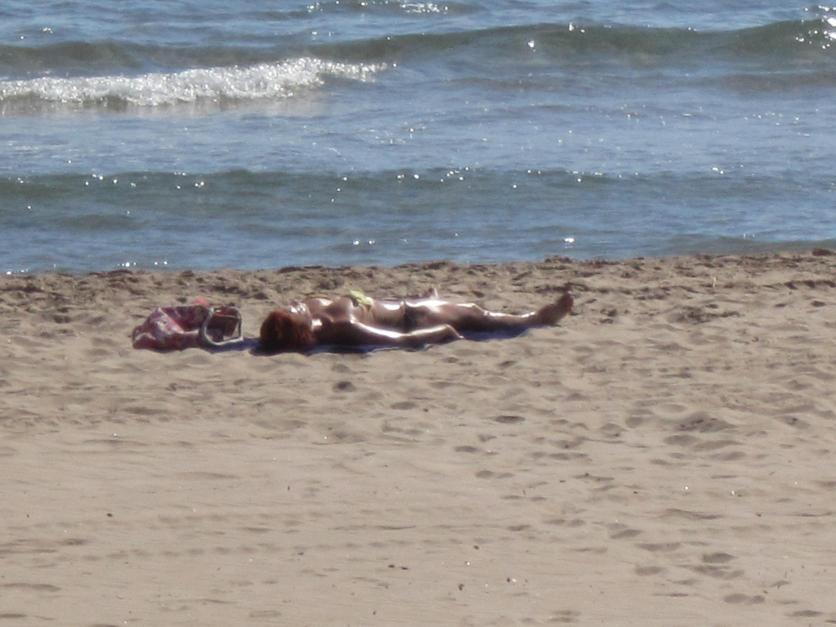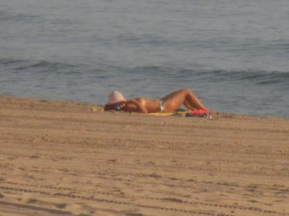 Tomando el sol en la arena,