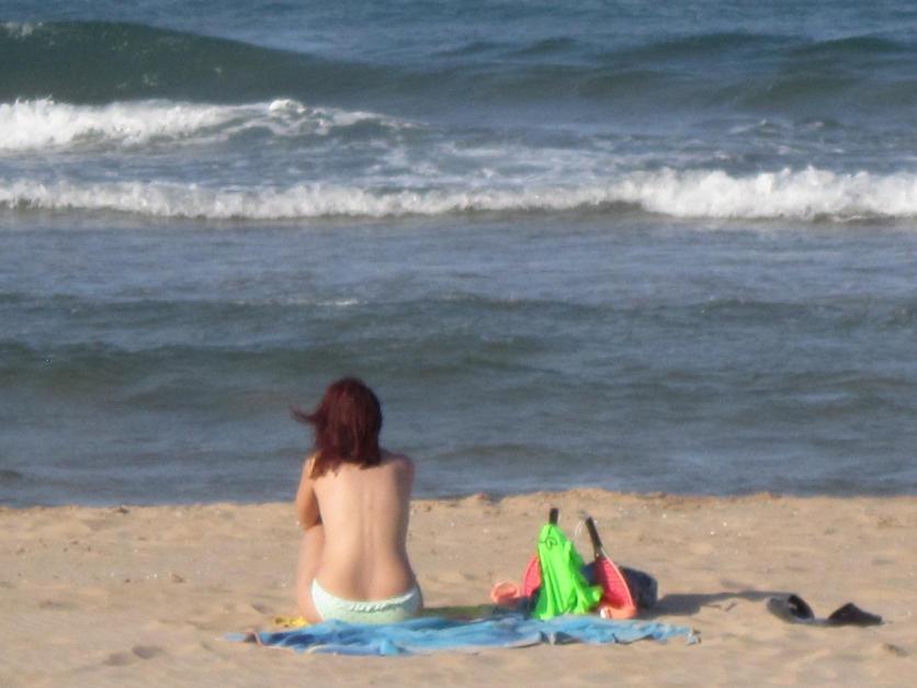 Sentada frente al mar,