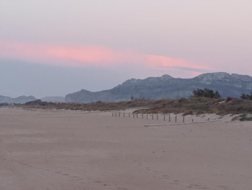 La playa desierta al atardecer,