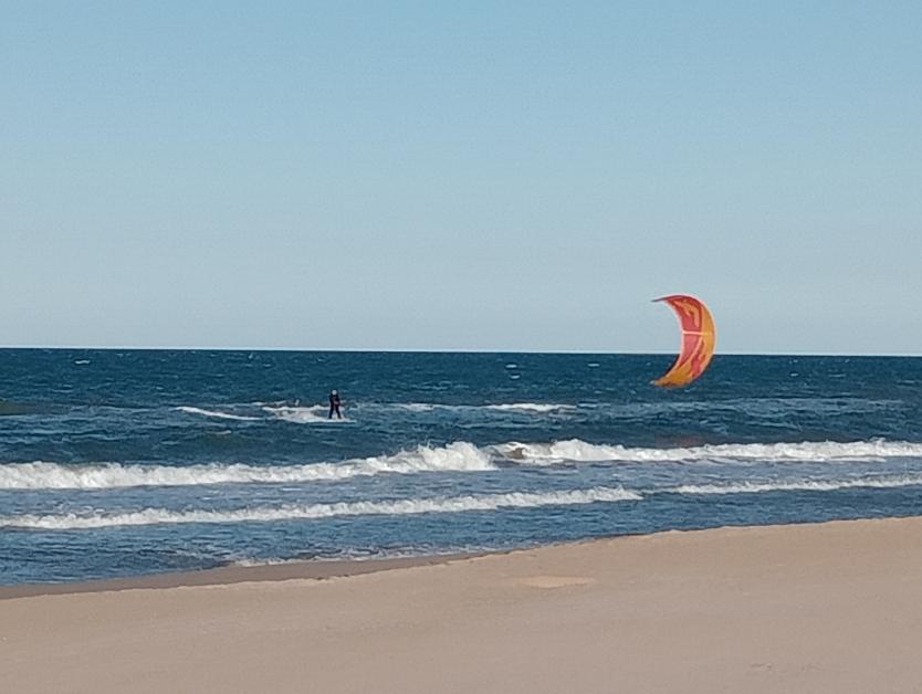 Kite surfista intentando levantar la vela,