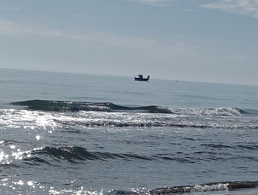 Barquito pesquero tras las olas,