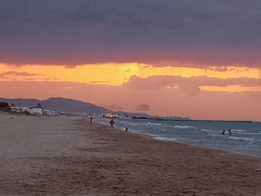 Atardececer con gente todavía en la playa,
