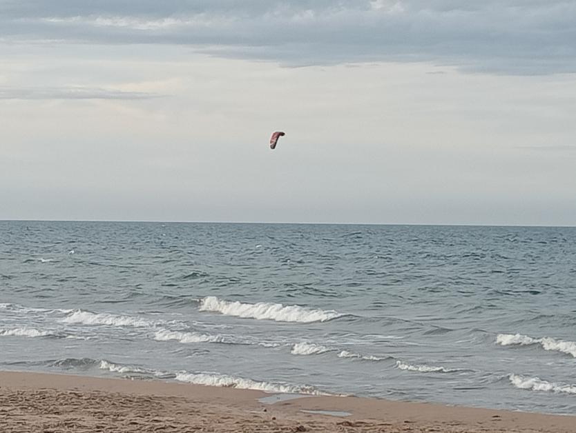 Un solitario kite surfista,