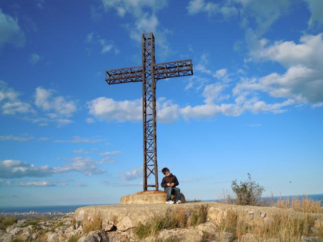 en la cima de la cruz,