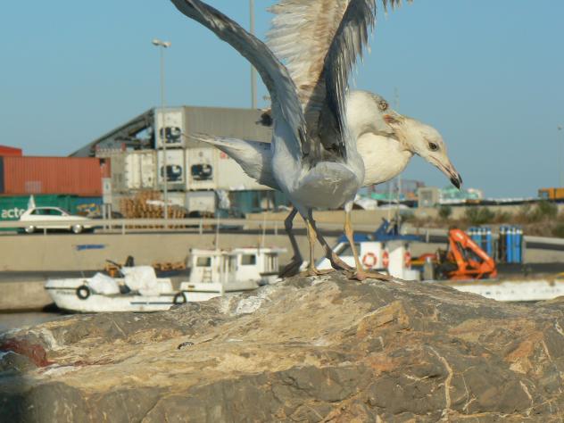 Gaviotas peleándose,