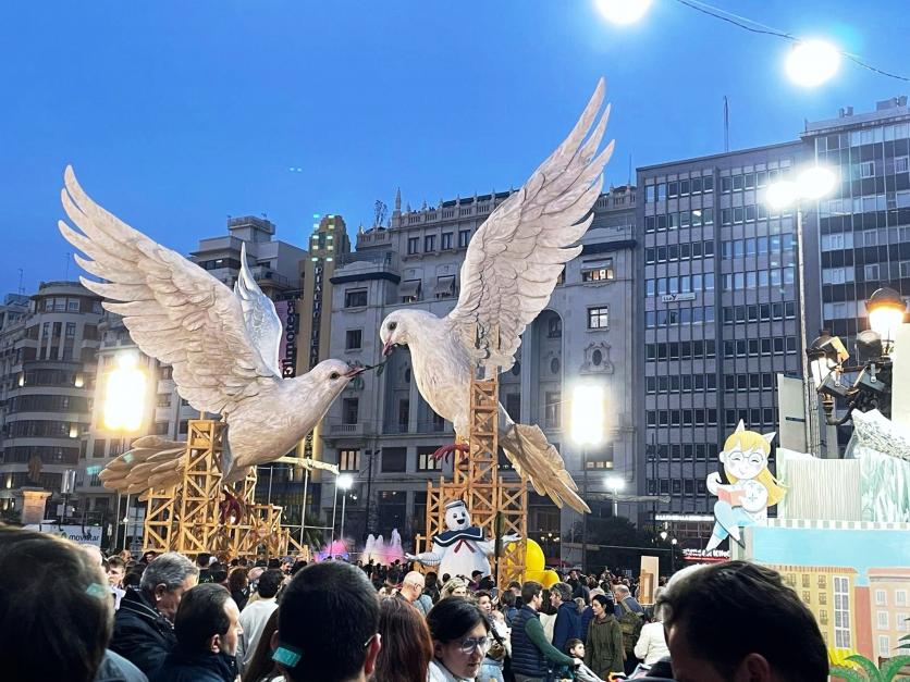 olivo ya une a las dos palomas de la falla 2024 en la