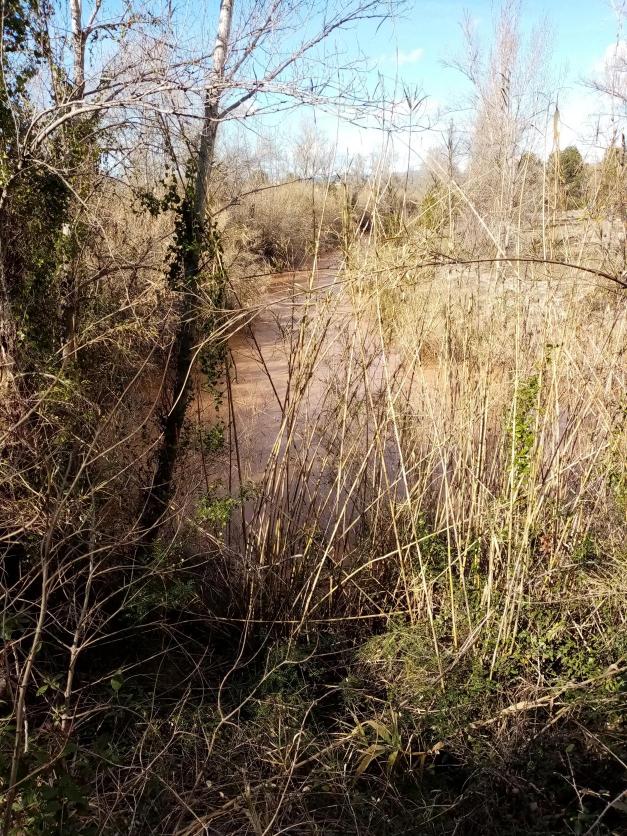 el rio turia arrastrando barro proveniente de la desembocadura de la rambla castellarda, desde el lugar por donde pasa el antiguo acueducto romano de villamarchante a valencia.