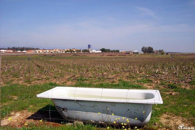 Bañera aprovechada para el ganado,