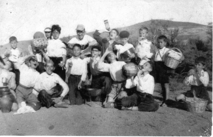 Paso a decirte quienes són, en la primera fila por la derecha, no recuerdo su nombre, pero es el hermano menor de la Matilde (de Moiselines) a su izquierda bebiendo de una garrafa, Antonio Escudero, bebiendo de una botella, Luis Fabian, con gafas, Arturo Cañizares, le sigue a su izquierda, Roberto Carril, sentado con una hortera, yo mismo, José Antonio Carril, a mi izquierda, Luis Fernadez (hijo del carpinterillo) al ultimo por la izquierda no le
