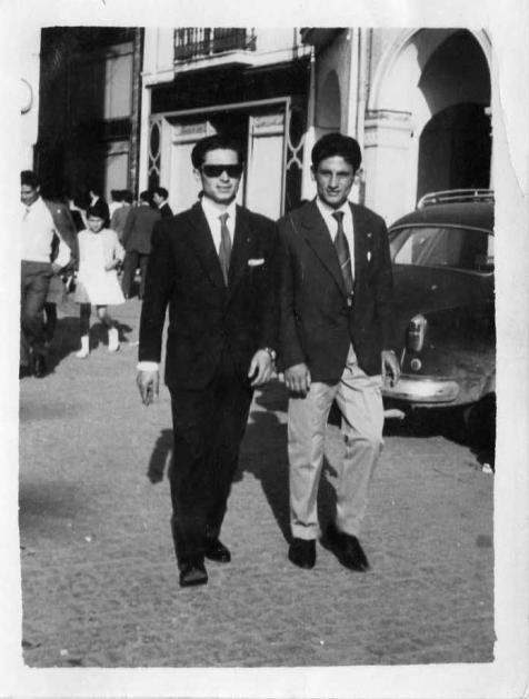 Marcelino y un amigo en la Plaza de España (foto antigua),
