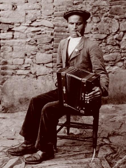 de Basiliso tocando el acordeón, último sacritán de Orellana
