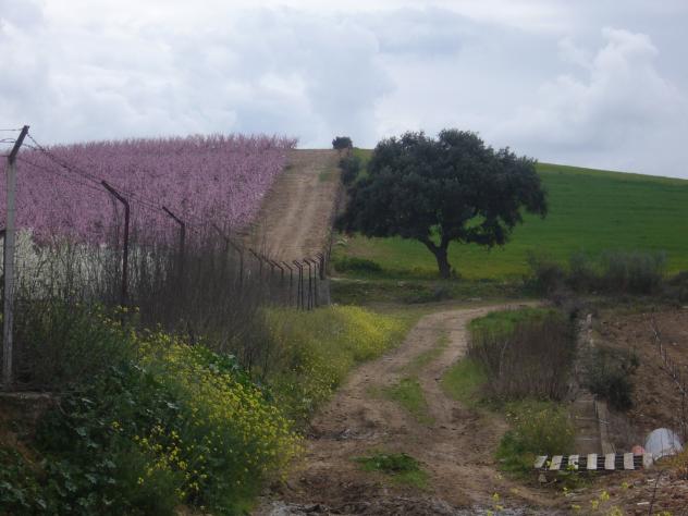 Lo de la izquierda son arboles en flor, y no te lo puedo decir seguro 100% pero creo que son ciruelos. Hola a todos