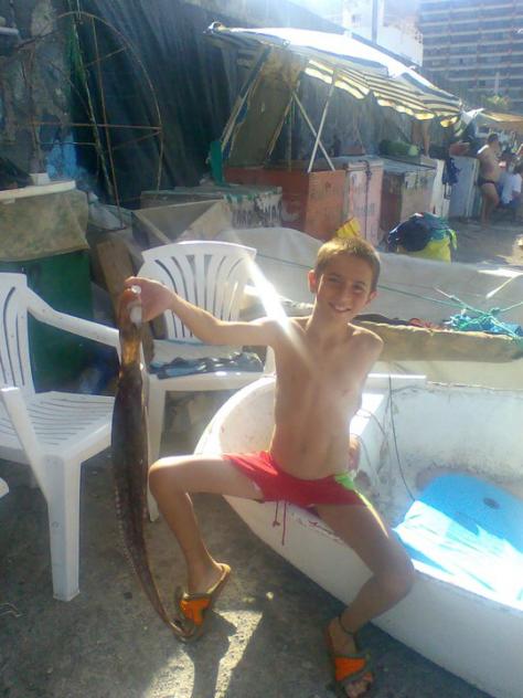 MI hijo, ya apuntando maneras de pescador como el abuelo Navarro,