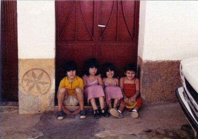 Mis hermanos, una prima mia y yo en la puerta de casa,