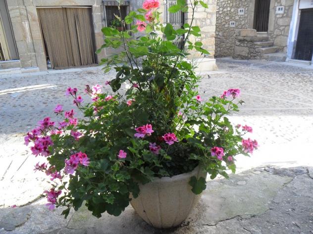 Macetero en una calle del pueblo,
