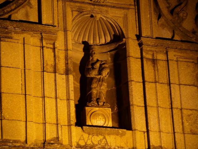figura virgen encima de la puerta,