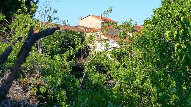 Viviendas tras los melocotoneros,