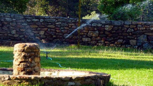 Regando el césped del San Juan,