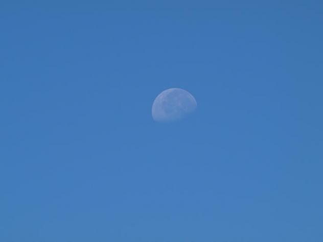 cielo azul y luna blanca,