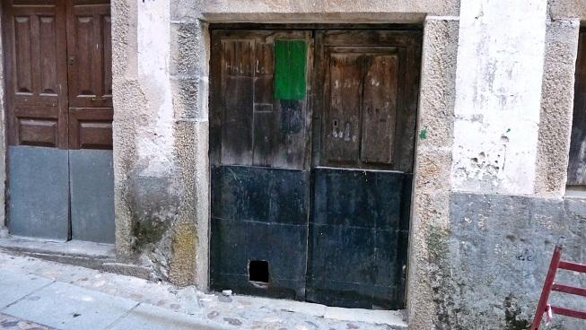 Puerta con parche verde y gatera,