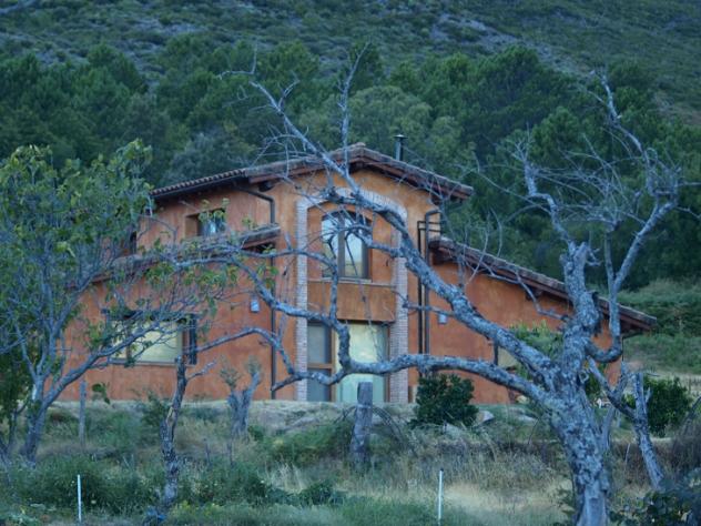 vivienda rústica con árbol seco,