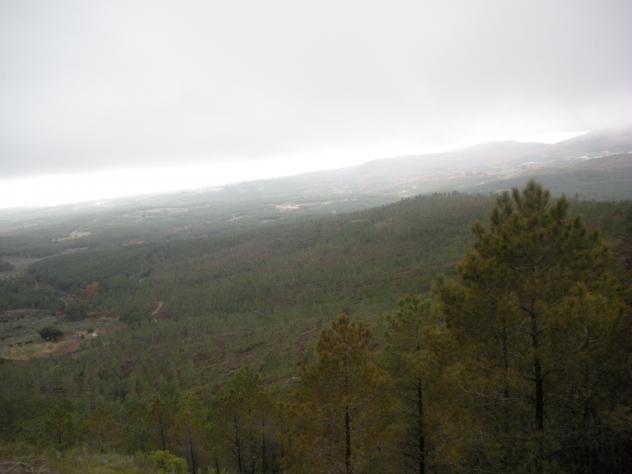 Pinares llenos de agua y niebla,
