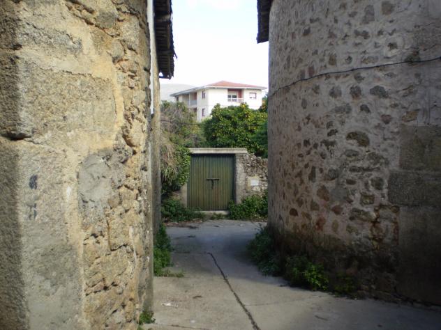 Una casa con la esquina redonda en la calleja,