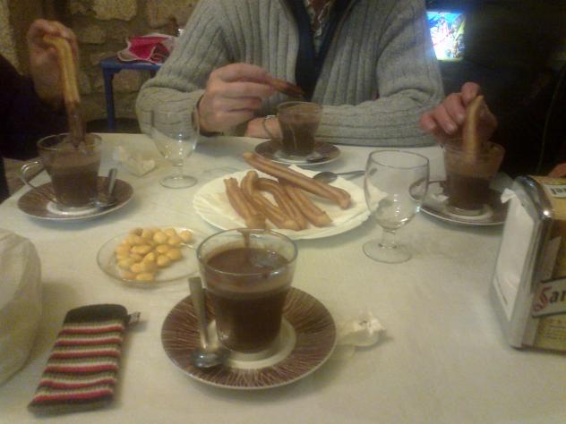 Y a las TRESSSSSSSSSSSSSSSSSSSSSSSSSSS SSSSS. A las Dos y Media. A las DOS. A la UNA. Asi pues como en la Foto paso a Degustar un Chocolate con Porras totalmente CASERO.