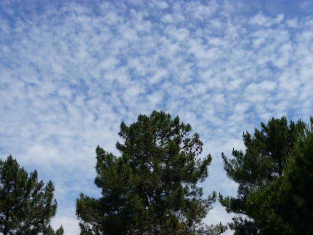 Pequeñas nubes coronando unos pinos,