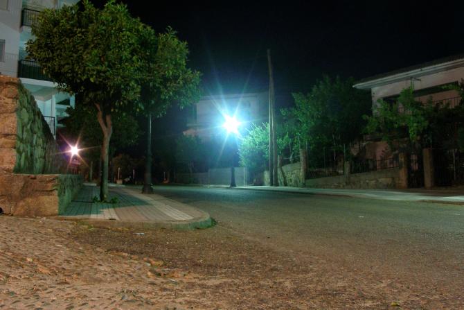 De noche en la parada del autobús,