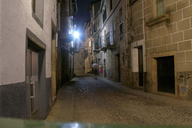 Por la calle, de noche,