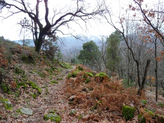 Árbol pelado y helechos secos,