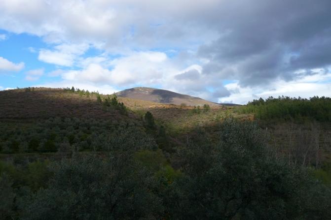 Pico montañoso bajo un cielo nuboso,
