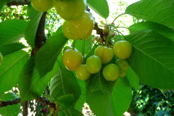 Cerezas aun sin madurar,