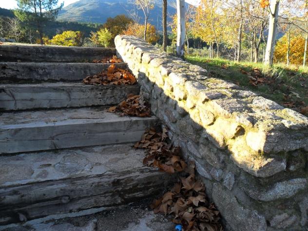 Las gradas de la escalera retienen las hojas,