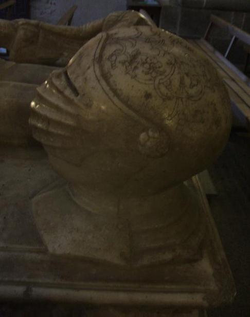Detalle del sepulcro de Bravo de Jerez: yelmo,