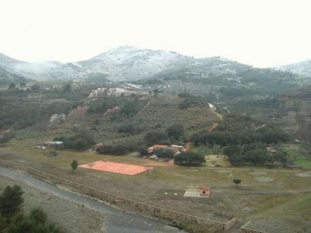 Rectifico, al pasar hace unos días por la zona compruebo que son seis las eras que aún se conservan (M. Alonso). único pueblo en las hurdes donde aún se conservan cinco eras para la trilla de las mieses, se puede apreciar en la fotografía los circulos redondos formados por pizarras, debían estar un poco protegidas para conservarlas en buen estado, una que perteneció a mi abuelo, tiene una inscripción en una piedra con el año 1916 como año de construcción, toda esta zona se donó voluntariamente por los propietarios, (todos los vecinos teníamos una pequeña parcela en propiedad), para zona deportiva y de recreo,...