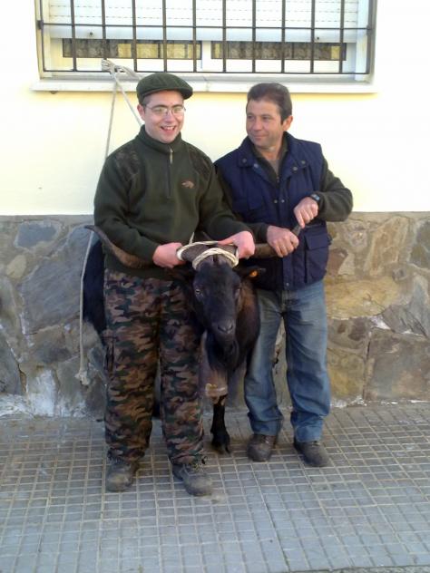 padre e hijo sujetando la fiera,